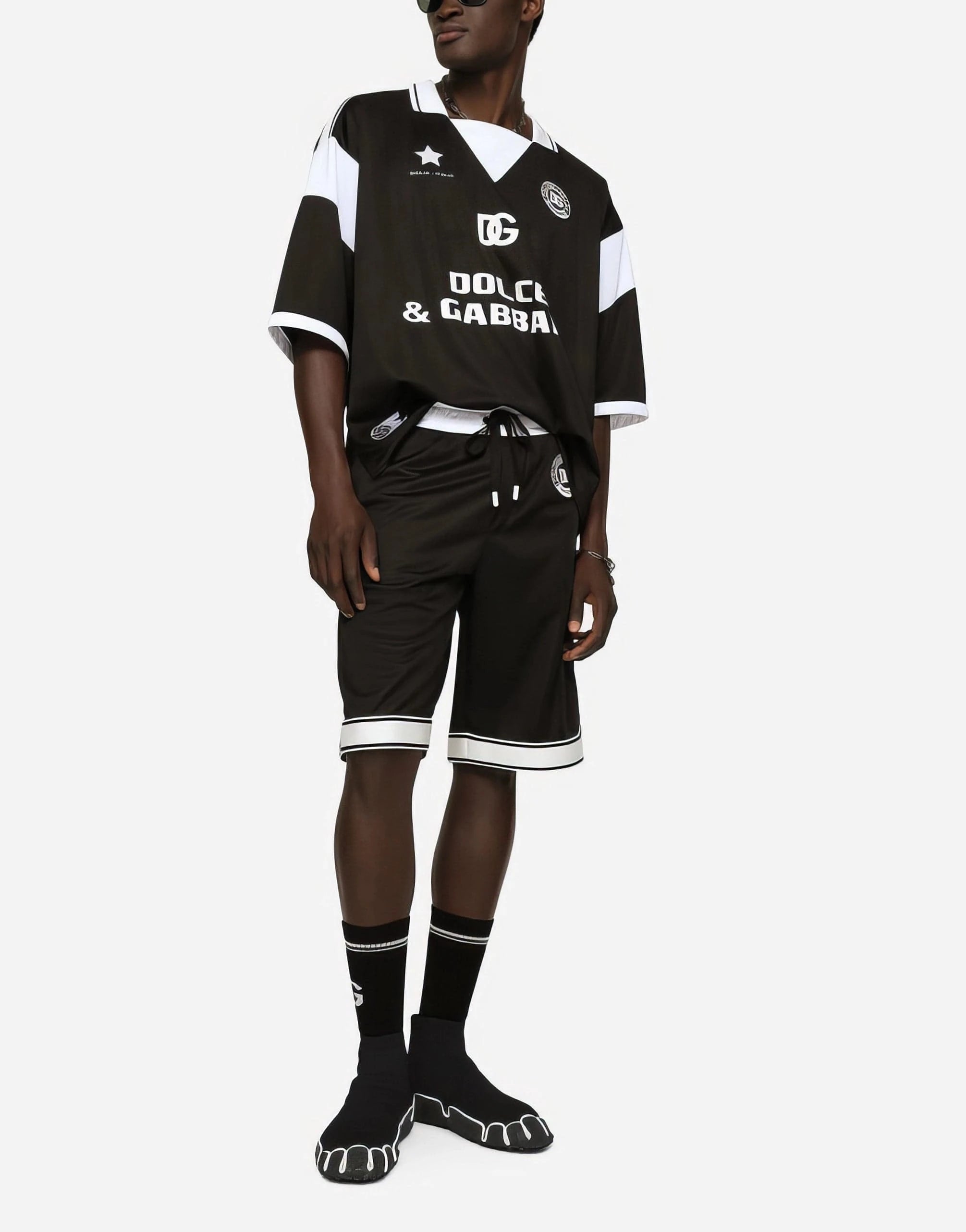 Upgrade your swimwear game with the Dolce & Gabbana DG Patch Swim Shorts. Made from lightweight polyester, these mid-length swim trunks feature a stylish and iconic DG patch from Italy. Perfect for a day at the beach, these shorts will elevate your summer look with a touch of luxury and Italian flair.