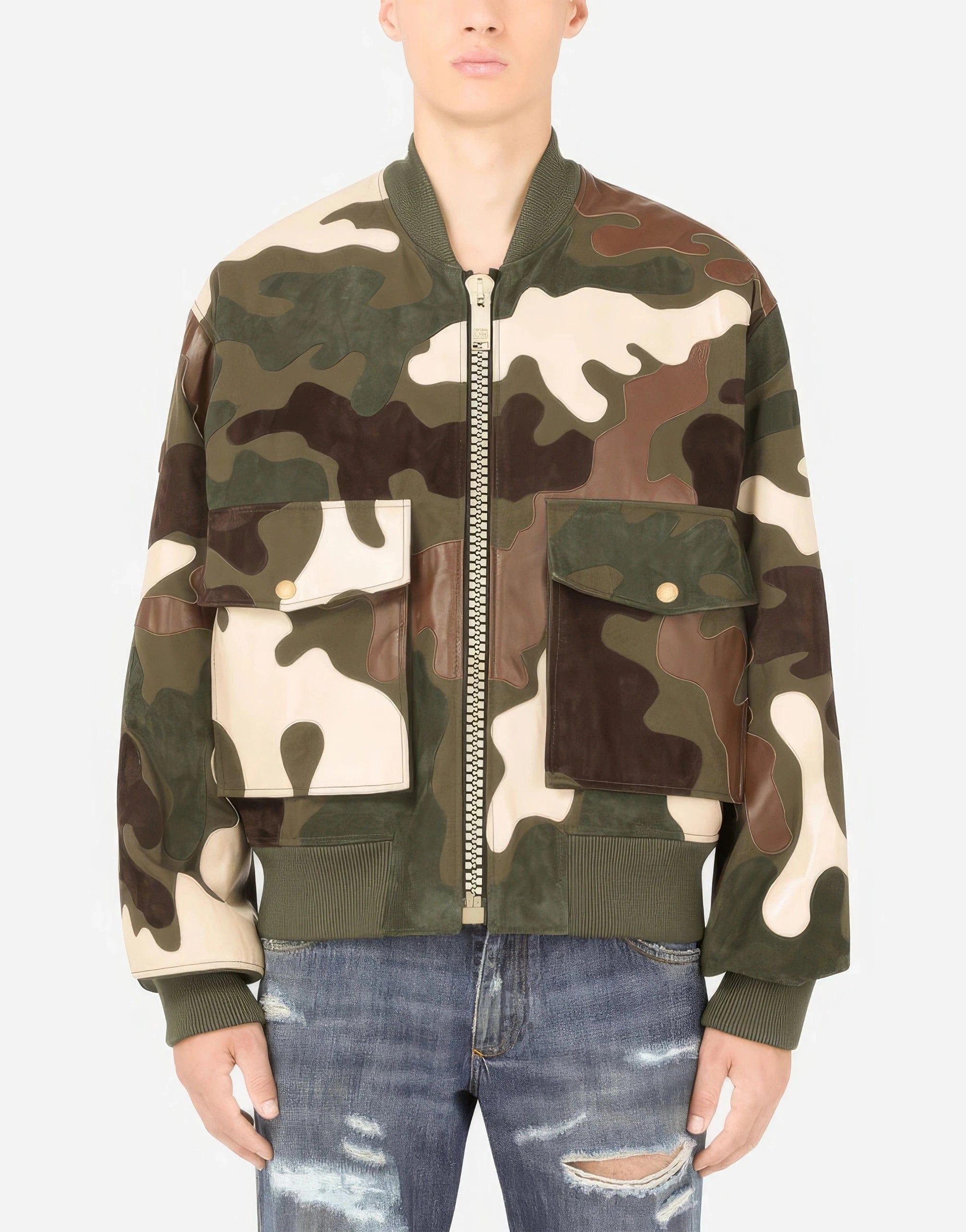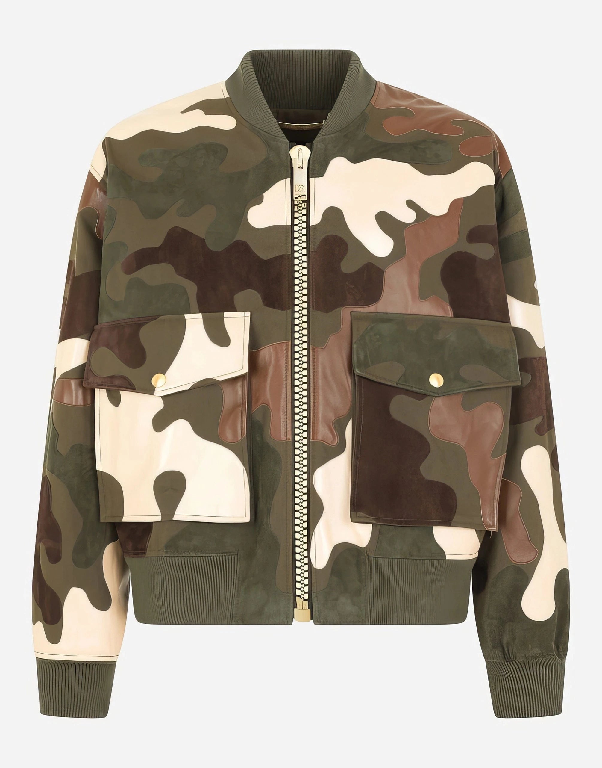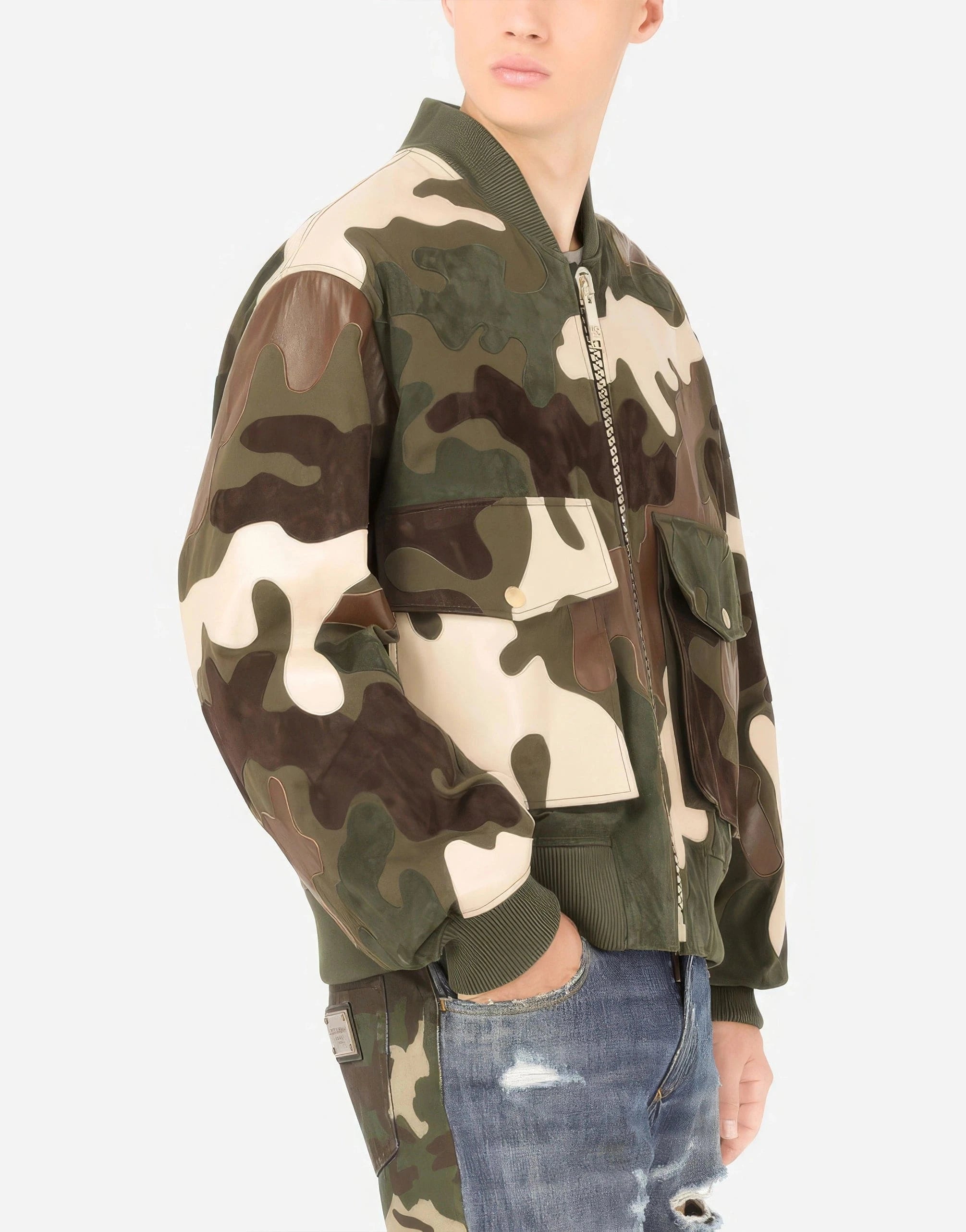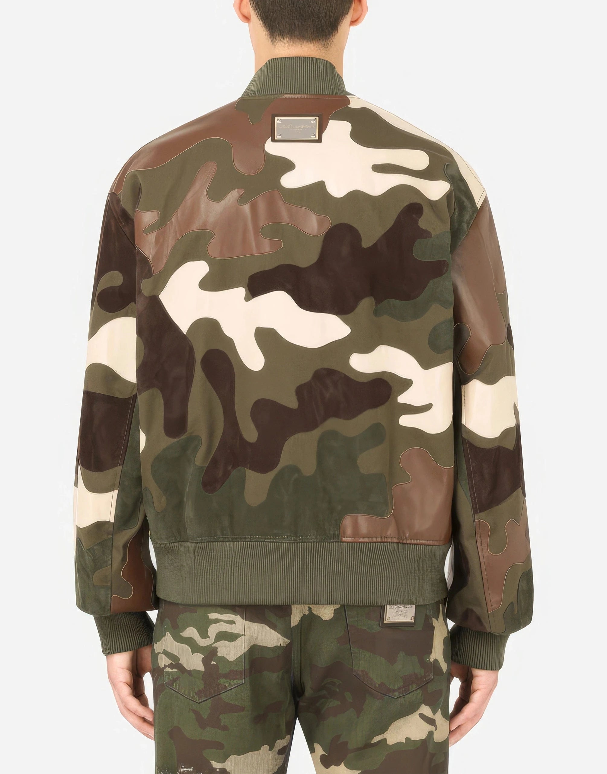 Camouflage Intarsia Leather Jacket