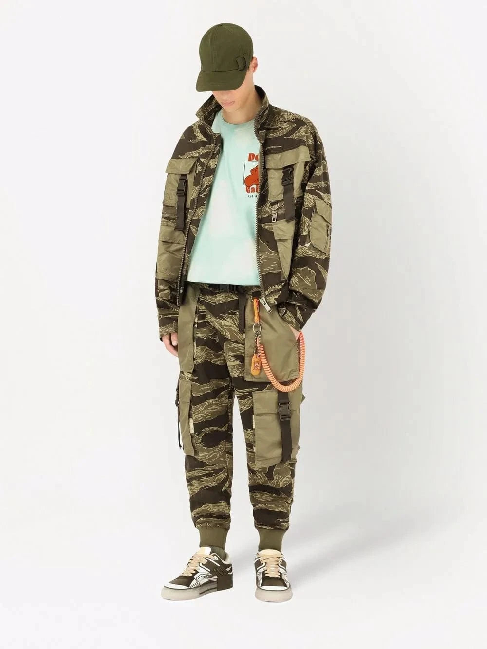 Experience a modern twist on natural mimesis with the Dolce & Gabbana "Reborn to Live" Collection. These Camouflage Pattern Jogging Pants feature a sporty design and contrasting details, including an embroidered logo, buckled waistband, and multiple pockets. Made with cotton and nylon for comfort and durability.