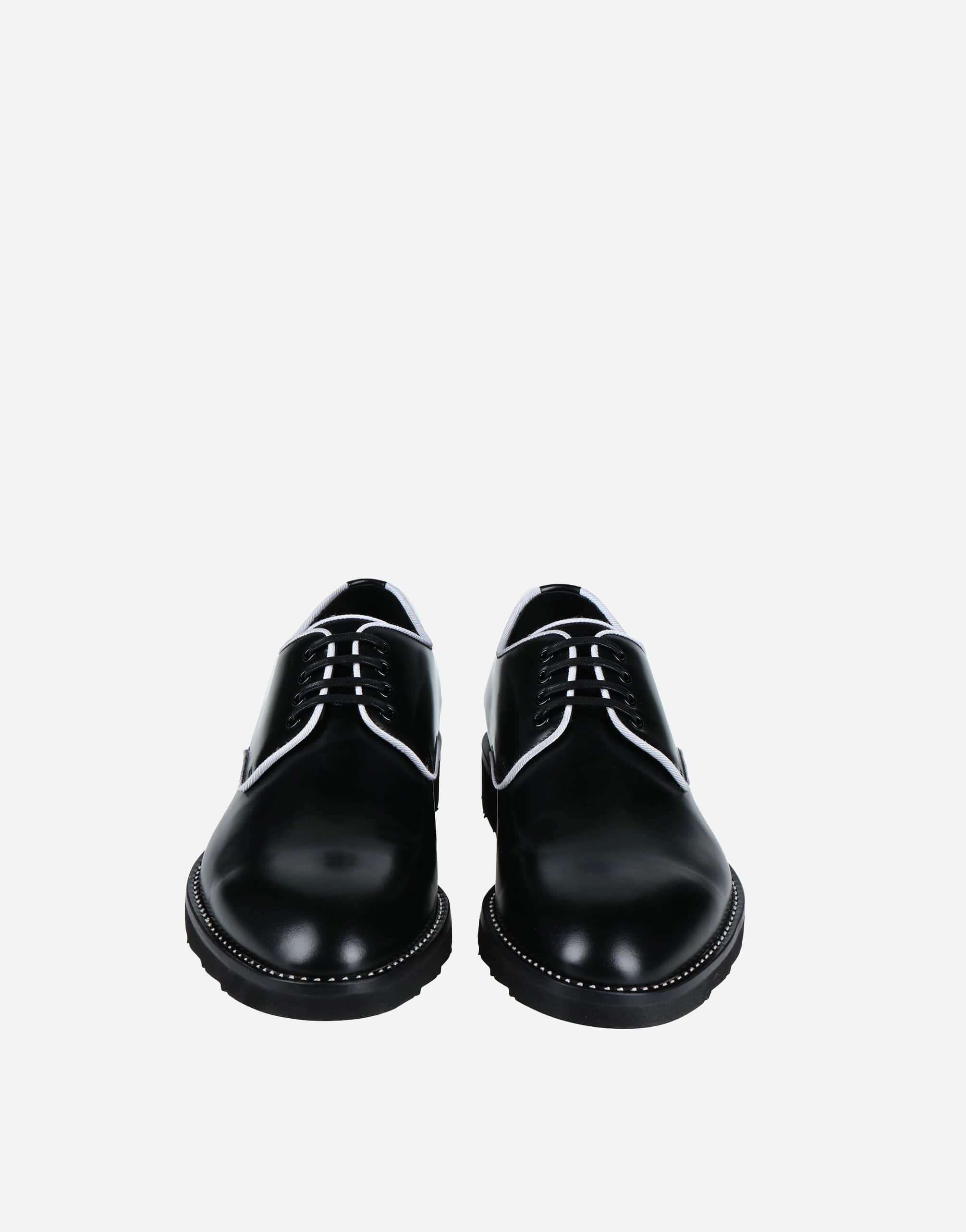 Contrast-Trimmed Polished-Leather Derby Shoes