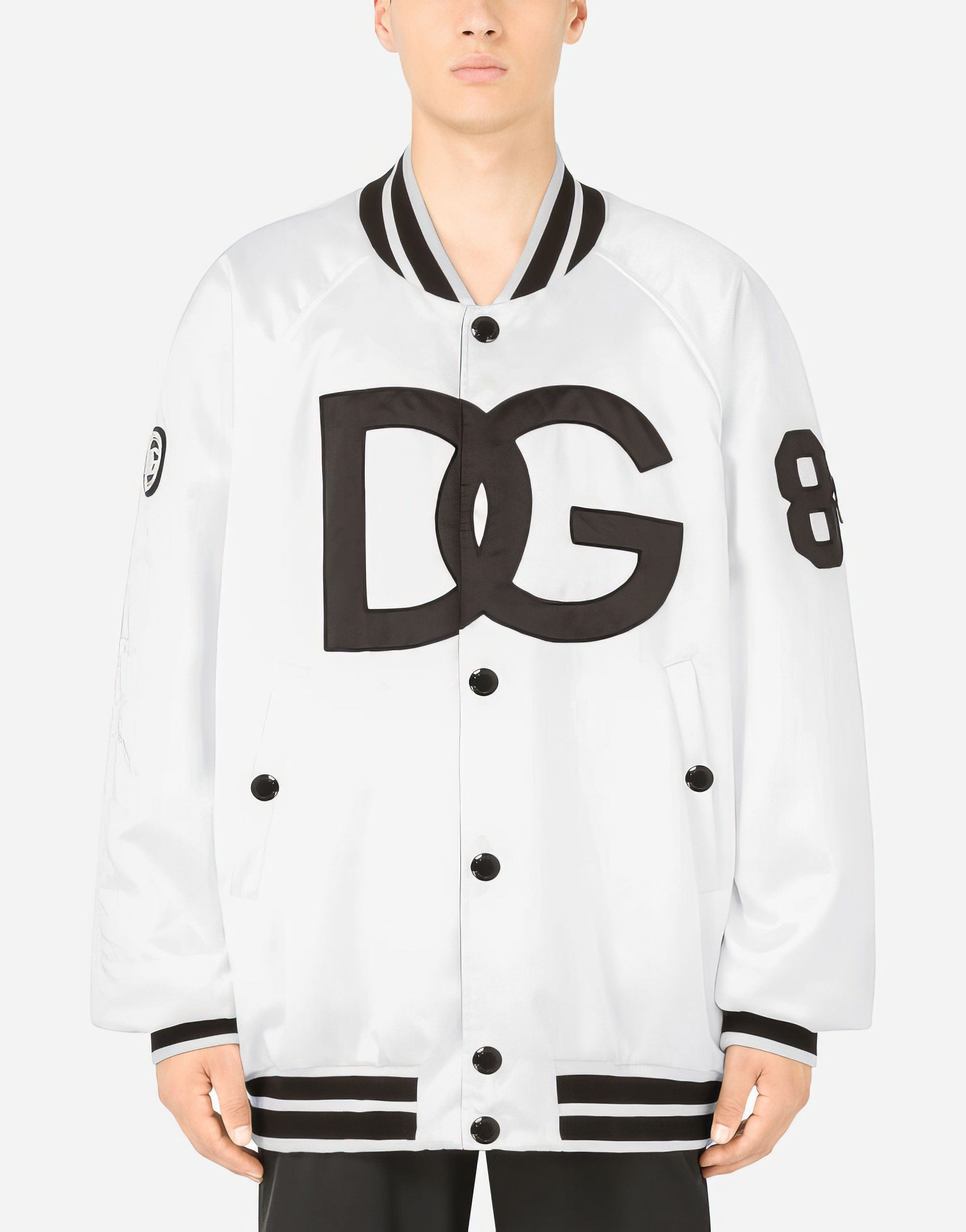 Experience the iconic Leopard print with the Dolce & Gabbana Hot Animalier collection. This bomber jacket stands out with red and black hues, oversized volumes, and bold red aluminum plating. The polyester satin material is highlighted with a patch and DG embroidery, making it perfect for those who want to make a statement.