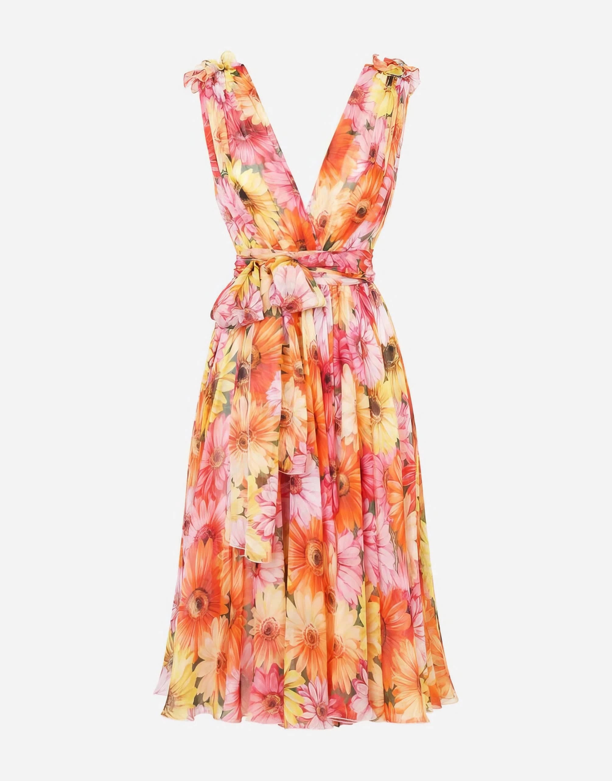 This Dolce&Gabbana midi dress is inspired by the vibrant colors and playful floral prints of the 60s. Crafted from lightweight silk chiffon, it exudes a romantic and feminine vibe. The perfect choice for a summer garden party, this dress will make you stand out with its whimsical Gerbera-Daisy print.