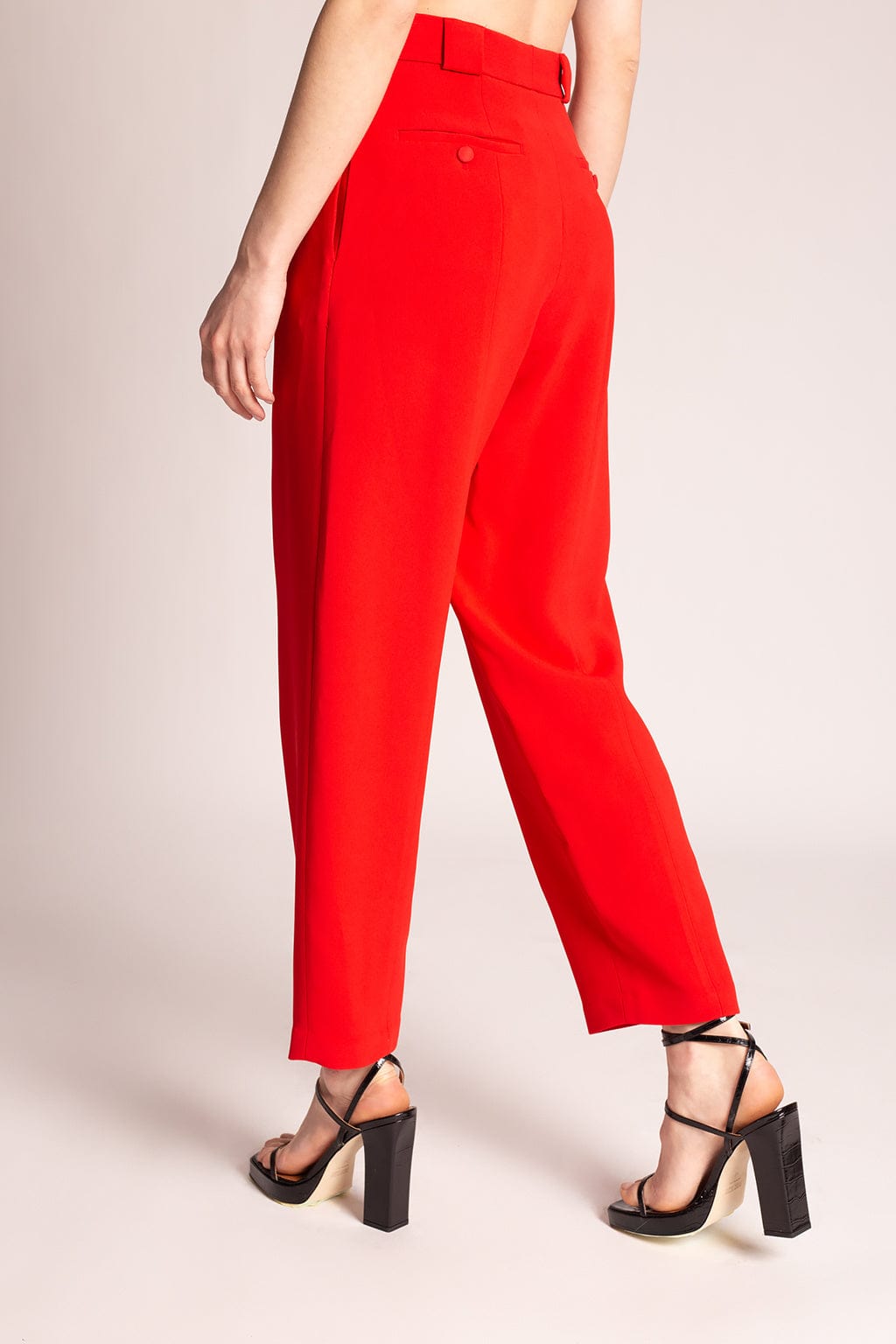 Elevate your wardrobe with these high-waist trousers by Dolce & Gabbana, crafted from a luxurious viscose blend that gracefully enhances the silhouette. Designed with a modern urban aesthetic in mind, their semi-fitted cut, complete with a chic belt and belt loops, effortlessly transitions from day to night. The rich red hue, combined with subtle slit pockets and a refined zip and button closure, makes these trousers an essential addition for those who appreciate the fusion of timeless elegance and contemporary style.