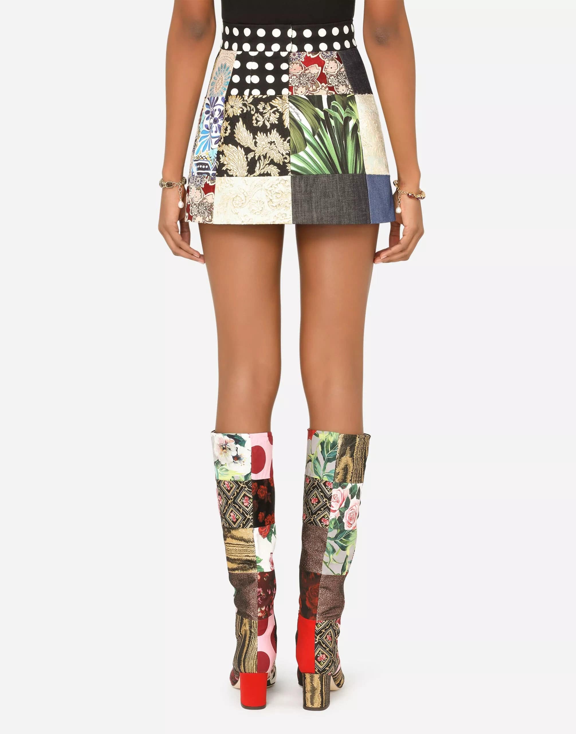 Look and feel your best wearing this patchwork jacquard cotton-blend miniskirt from Dolce & Gabbana. With its colorful, unique patchwork design, it's sure to become a fashion favorite. Crafted from a luxurious blend of cotton and wool, it's made to be comfortable while stylish. Perfect for sunny days in Sicily or elsewhere.