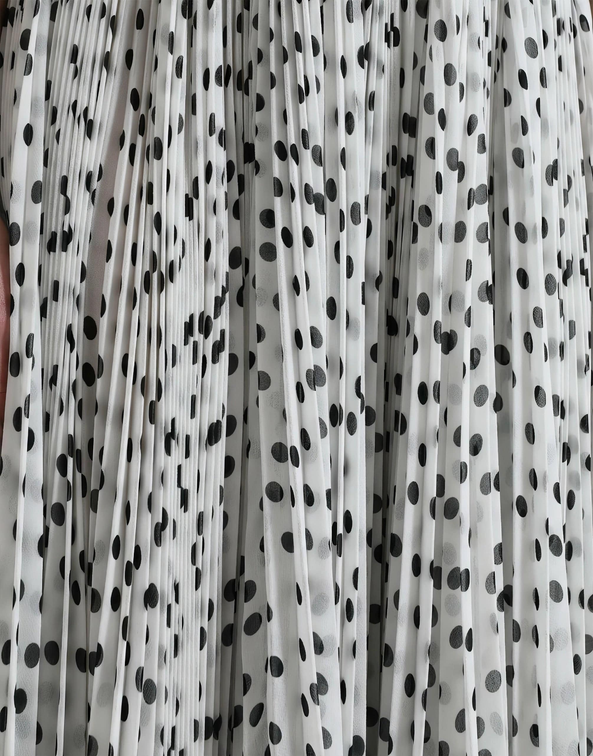 Elevate your style with this Dolce & Gabbana polka dot maxi dress. Designed with a pleated silhouette, this dress exudes elegance. Made with premium fabric, it offers comfort and luxury. Perfect for any occasion, this dress is a must-have for fashion-forward individuals.
