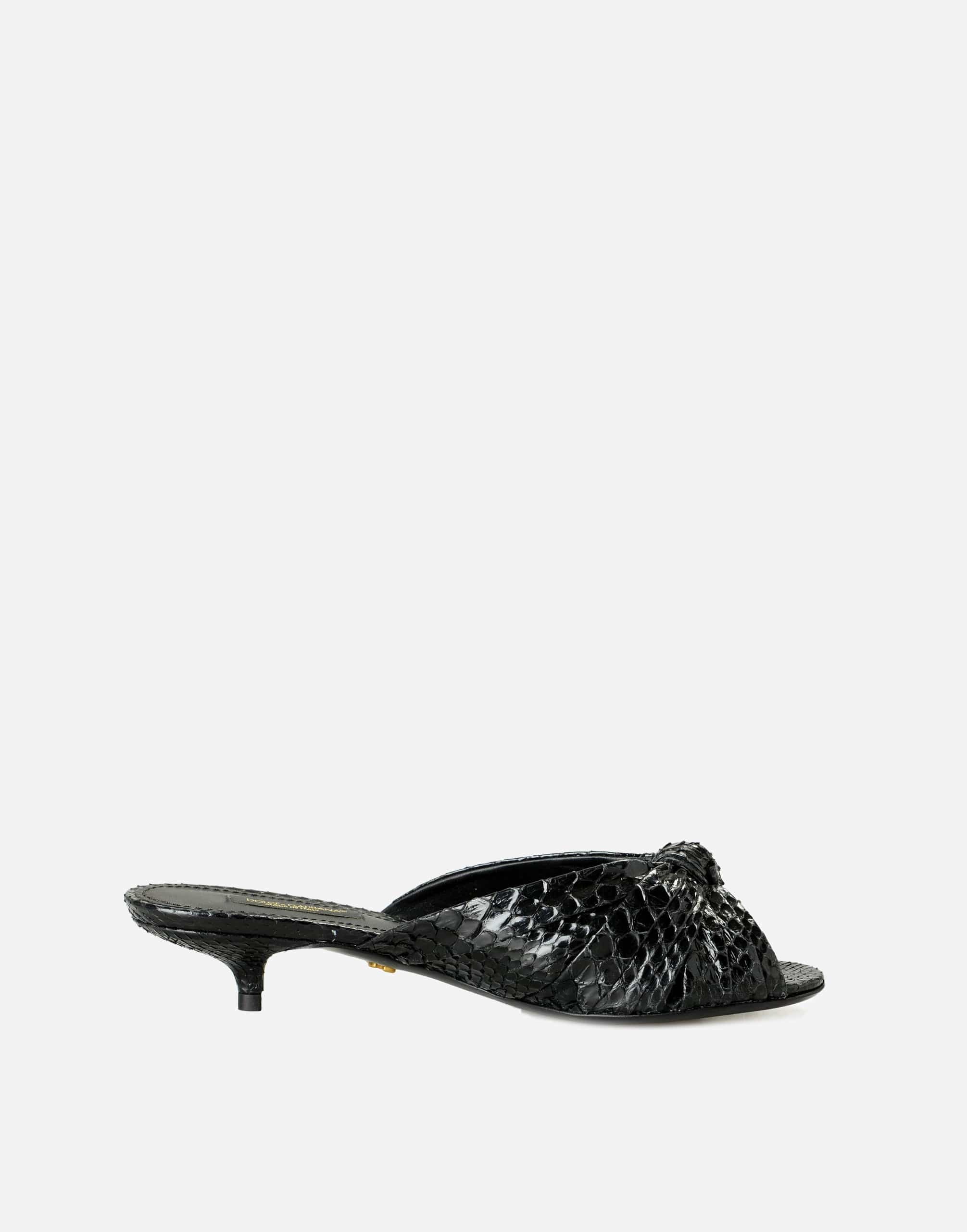 Elevate your style with Python Skin Heeled Mules by Dolce Gabbana. Made from luxurious leather, these sandals feature a 5 cm heel that will add a touch of sophistication to any outfit. Perfect for any occasion, these high heels will elevate your look and provide all-day comfort.