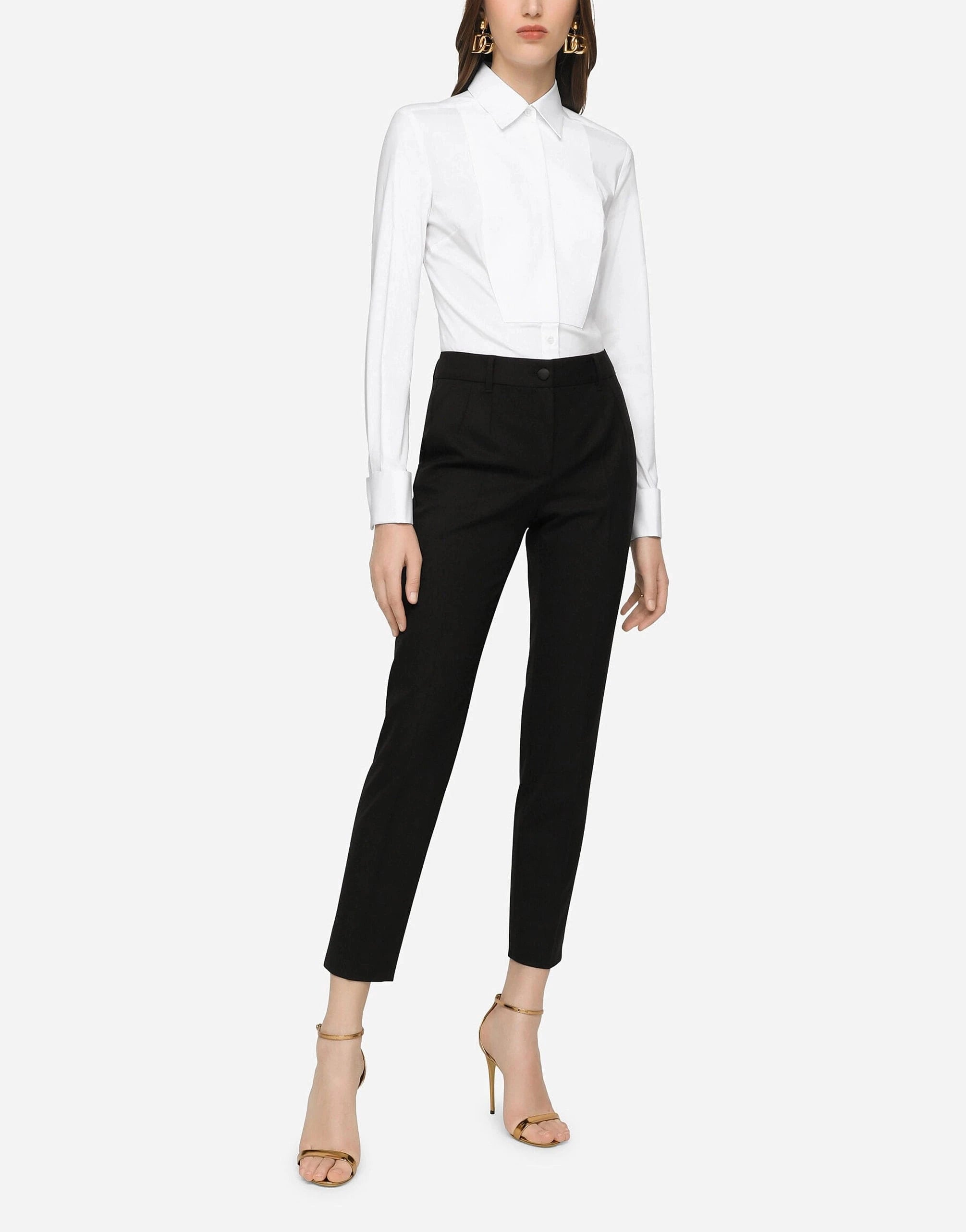 Discover the perfect blend of heritage and modern design with the Dolce & Gabbana Stretch-Poplin Tuxedo Shirt. This white shirt features a classic collar and slim fit, crafted from a comfortable cotton blend with exquisite mother-of-pearl buttons. With a concealed front fastening and elegant bib detail, this shirt is both timeless and effortlessly stylish.
