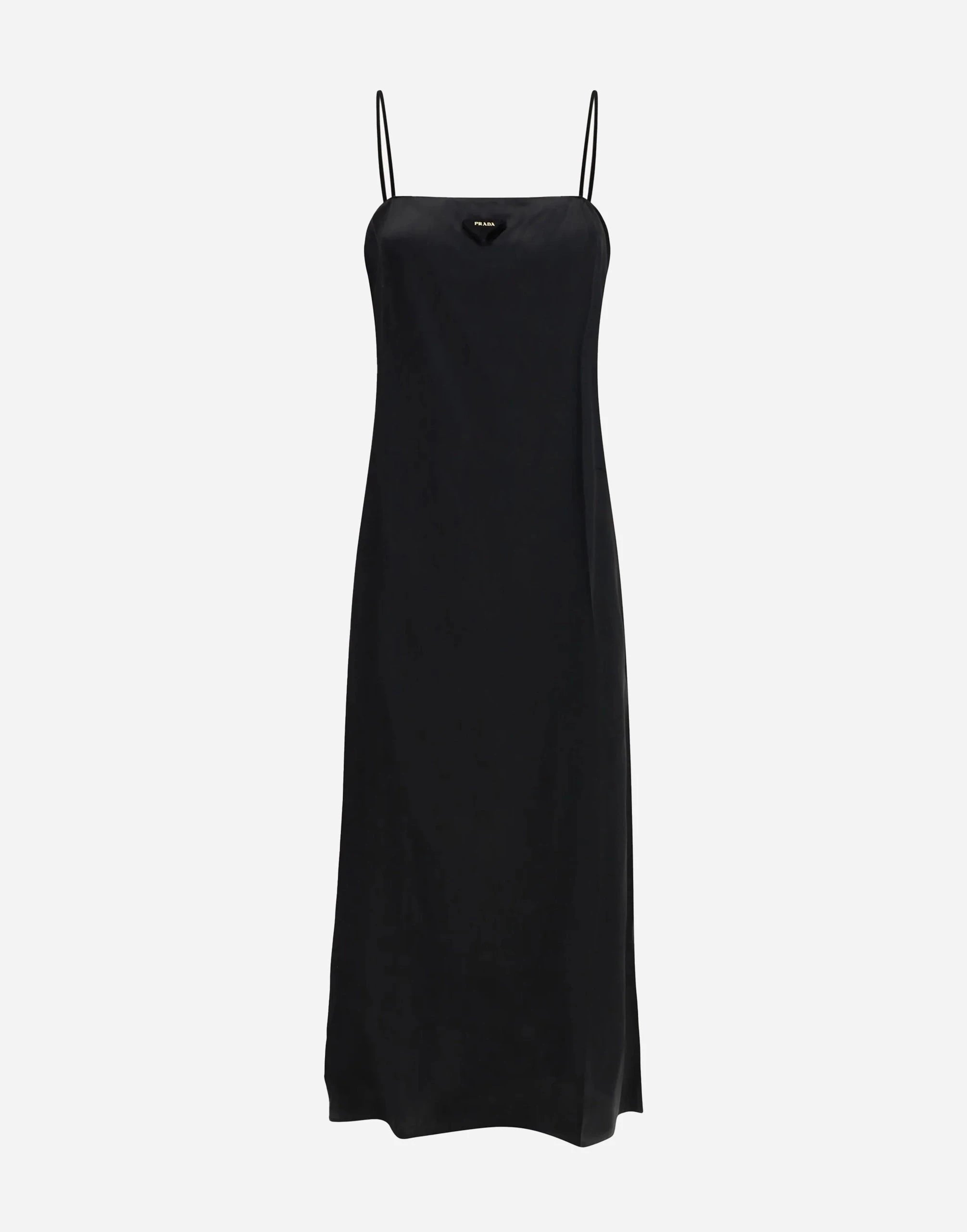 Шелковое платье с длинным скольжением от Prada олицетворяет заниженную роскошь, ее тонкая структура является свидетельством мастерского мастерства. С тонкими ремнями и жидким силуэтом это черное платье макси источает чувственность, идеально подходящее для изысканных вечеров. Скрытая боковая молния обеспечивает гладкую, непрерывную линию, в то время как культовая треугольная бархатная пластырь осторожно украшает переднюю часть, предлагая тонкий поклон наследию бренда. Нашибочный предмет в женской одежде, он плавно женится на простоте и элегантности, что делает его вневременным дополнением к любому проницательному гардеробу.